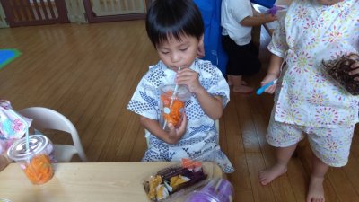 お兄さん・お姉さんを真似っこして、「じゃぁ〜」と水が流れるのを楽しんでいました(๑˃̵ᴗ˂̵)