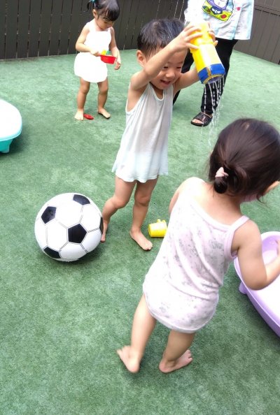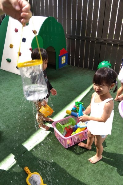 お兄さん・お姉さんを真似っこして、「じゃぁ〜」と水が流れるのを楽しんでいました(๑˃̵ᴗ˂̵)