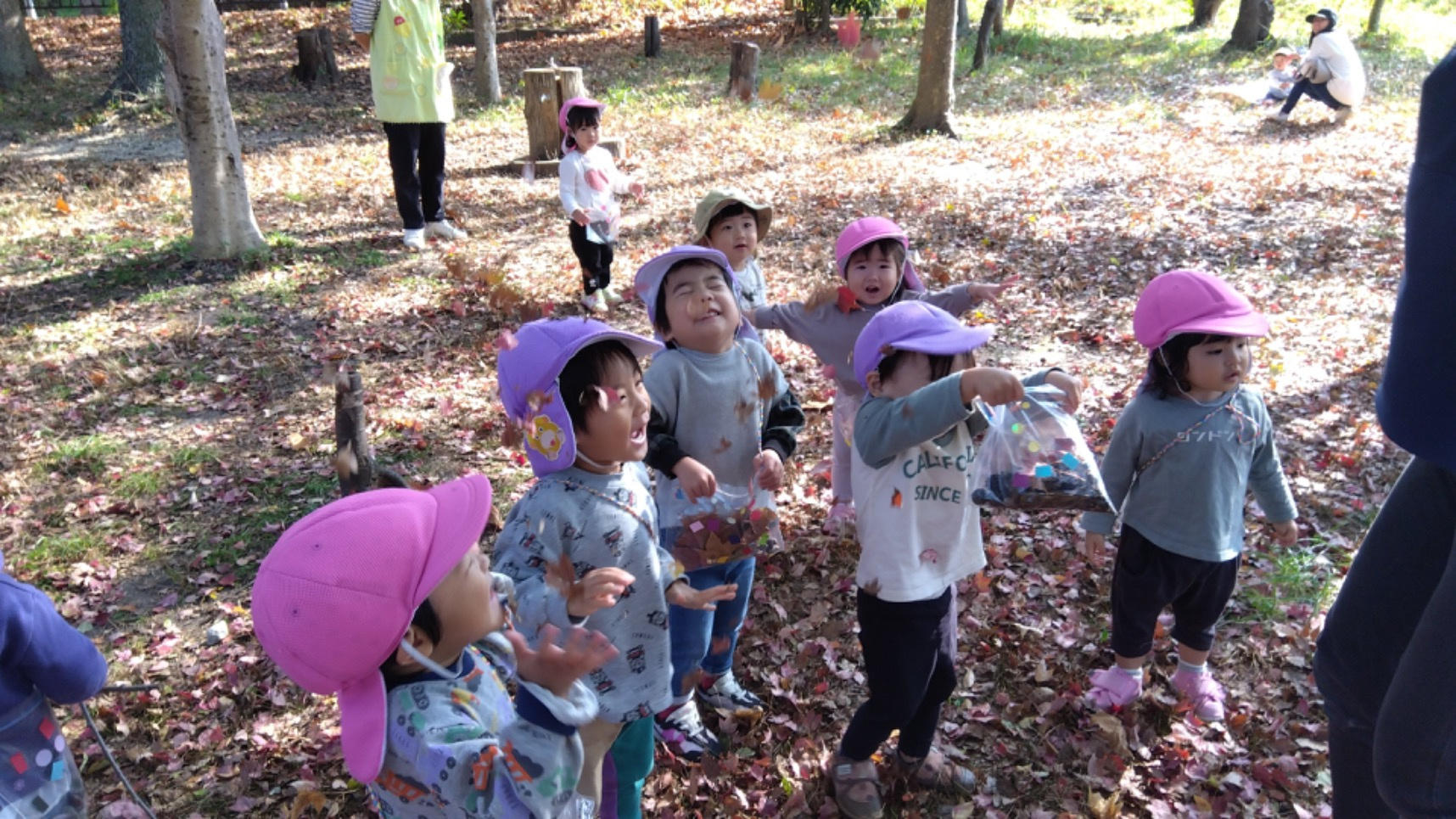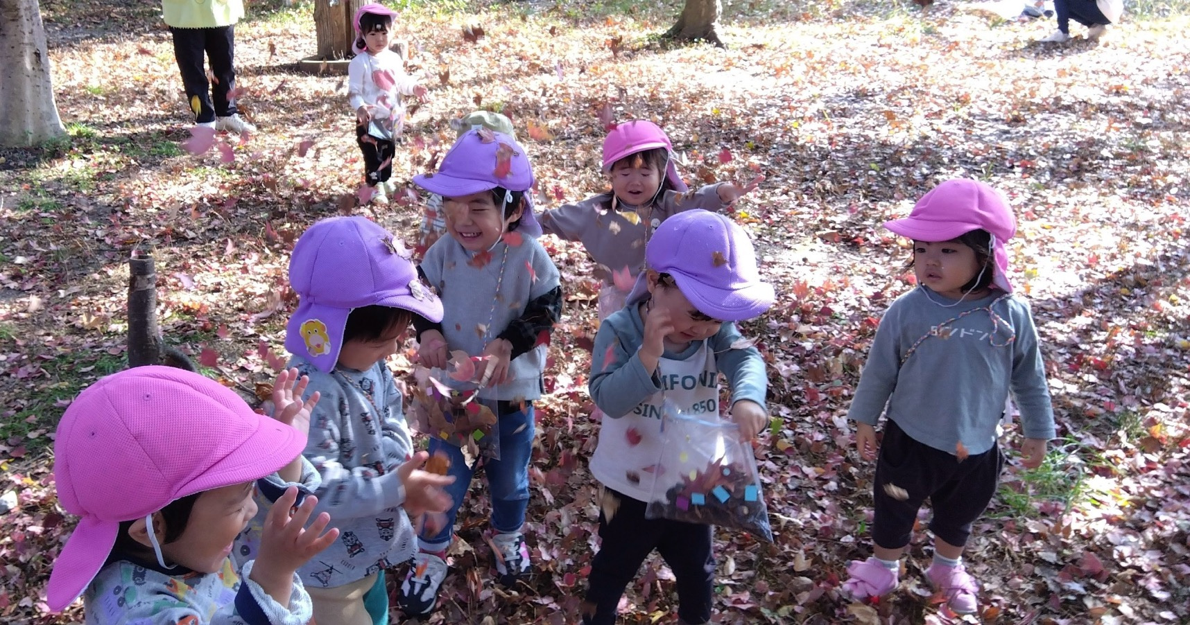 葉っぱの上を歩くと、ガサガサ♪と素敵な音が聞こえました!