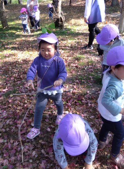 「こーんな、きがあった!!」と自分の背と同じぐらい大きな木をズルズルと持って来ました!!