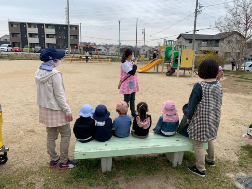 2021年03月15日(月) お知らせ 3/12(金)☆なんきゅう公園へ☆ 久しぶりになんきゅう公園に行きました。 小さい子も一緒でしたので改めて危険箇所や勝手に公園の外に行かない事など確認してから遊びました。 ここにしかない遊具もあるから、楽しかったね♪