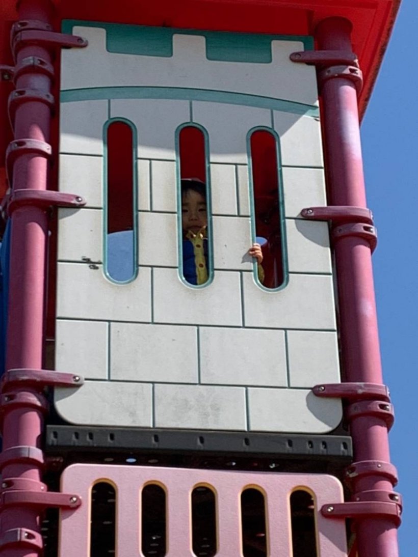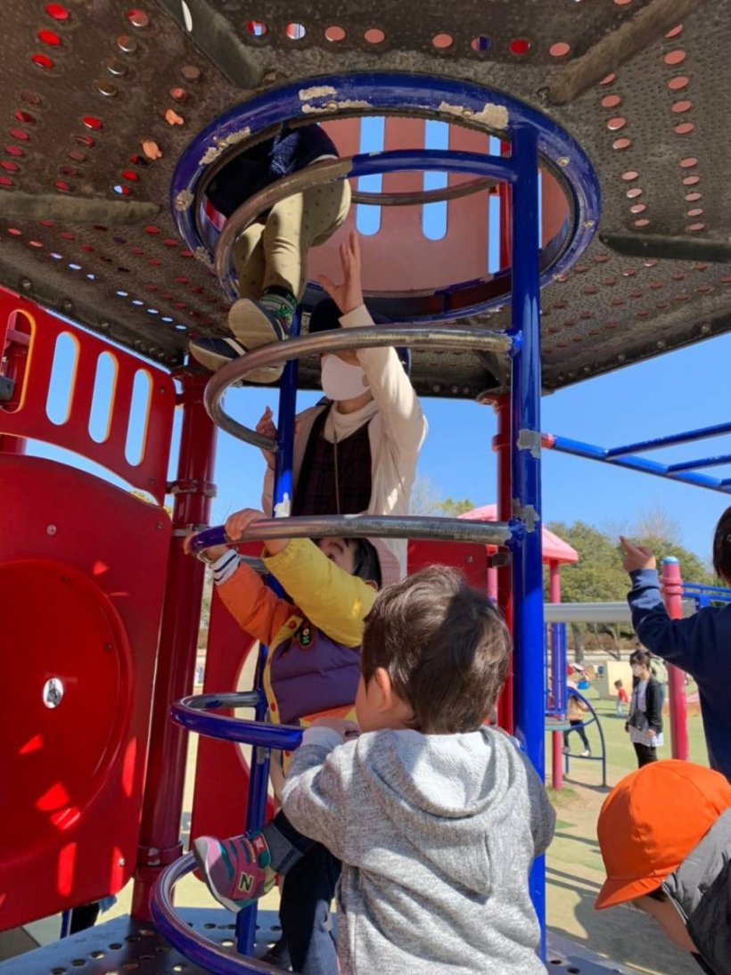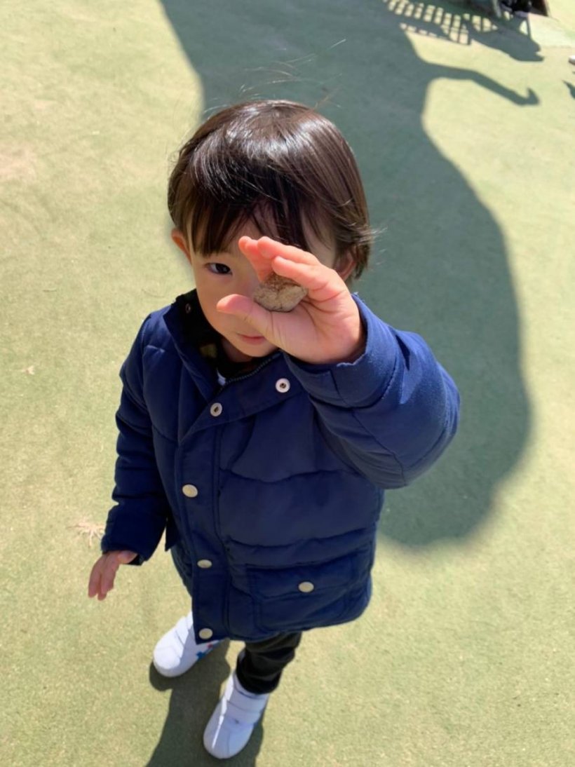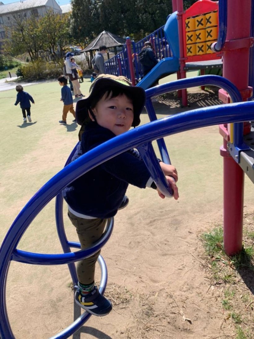 休み明け。青空広がる月曜日。 きょうもやっぱり歩いて目指すは『恐竜公園』です! いろんな遊具があるから楽しいよね♪