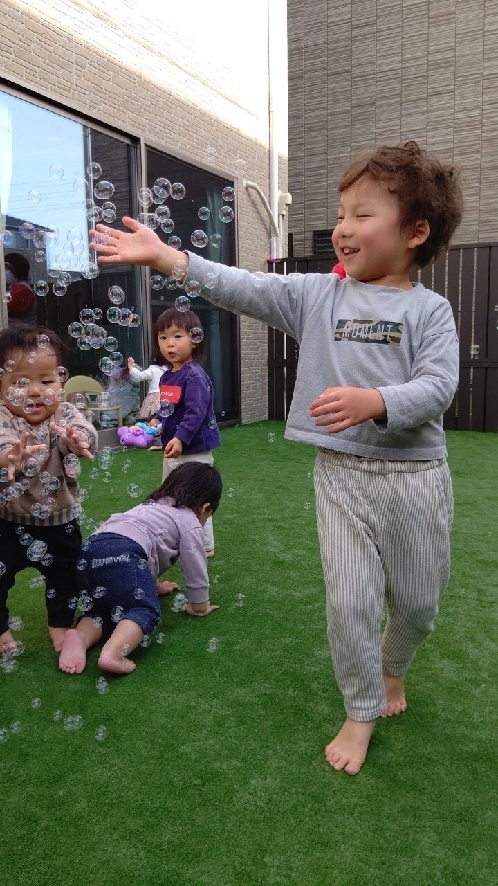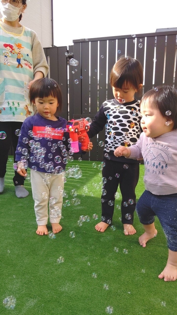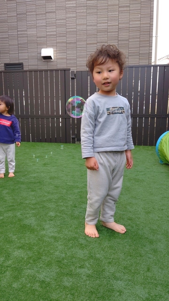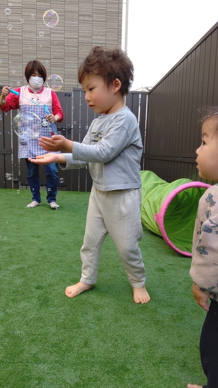 午後からはテラスで しゃぼん玉をしたり、お散歩に行きました。