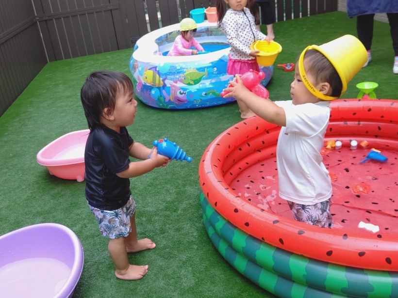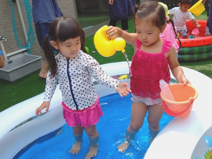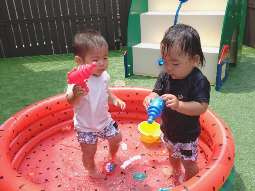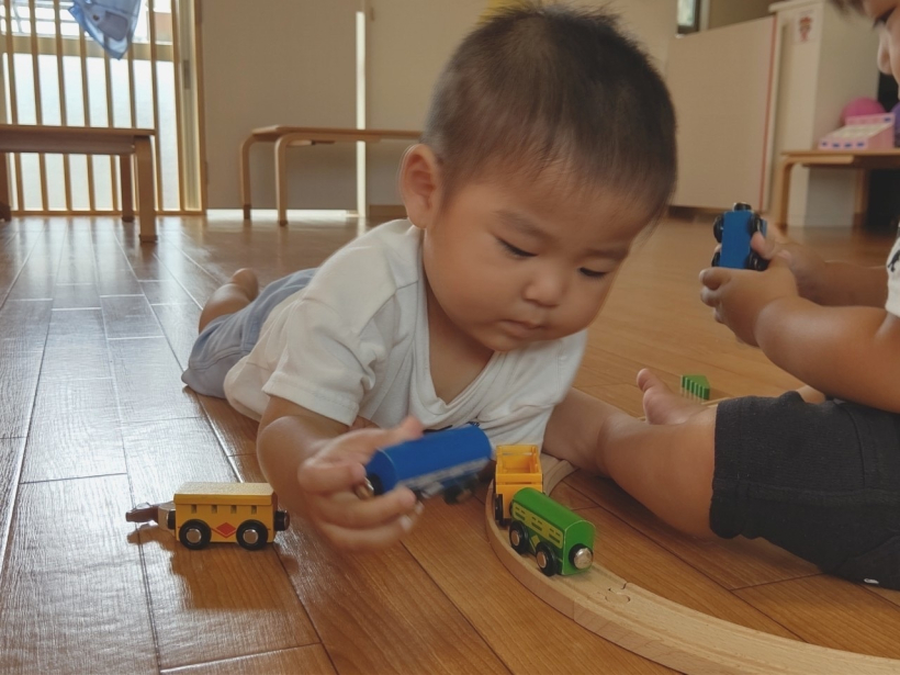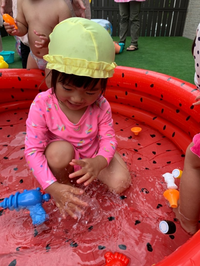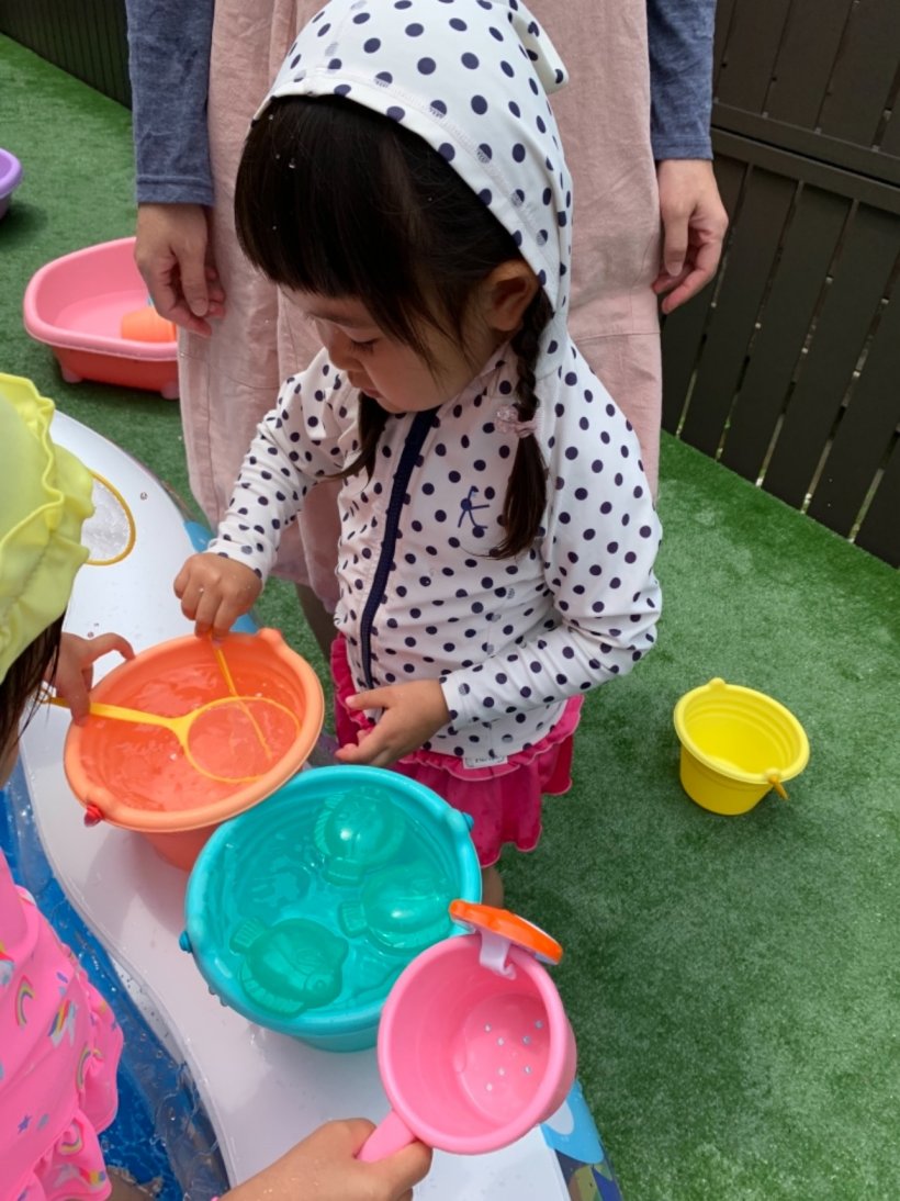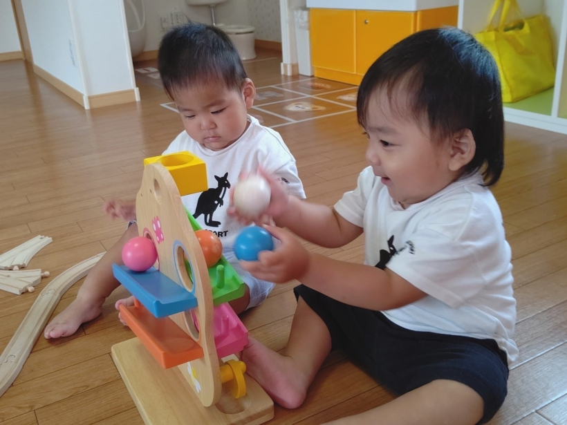 2021年06月29日(火) お知らせ 6/28(月)☆暑くなってきたね☆ のりもの、だいすき♡ ころころ転がすよ。 みて! かぶってみたよ。 ちびっこギャング、あらわる☆ うちあいだ〜! わたしたちはクッキング♪