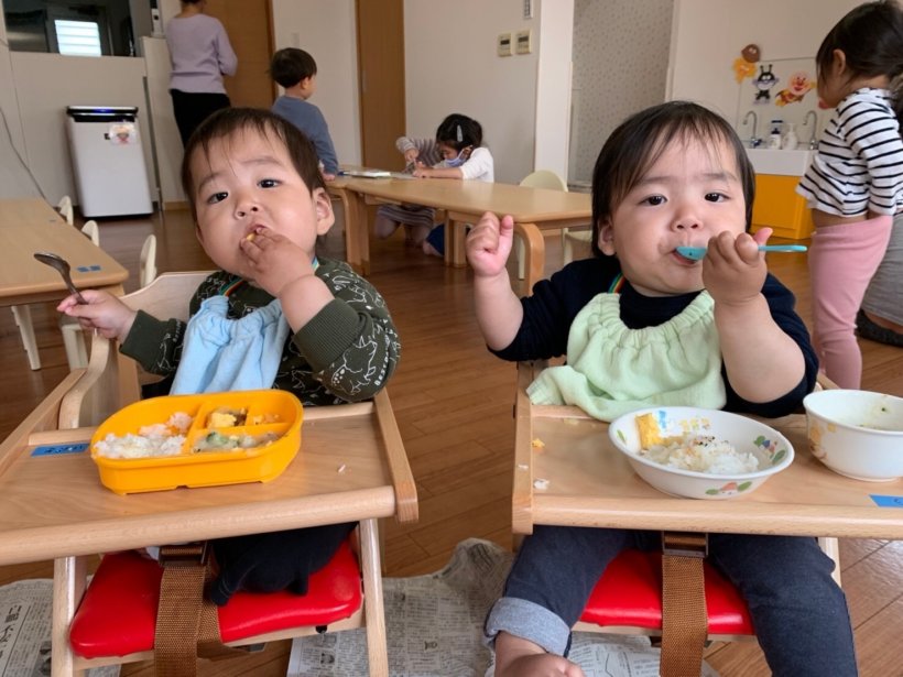2021年03月25日(木) お知らせ 3/25(木)☆じぶんで食べるよ☆ 今日は体調を崩してお休みする子多かったです(>_<) 早く元気になってね☆ お昼ごはん。 小さい子たちは大きい子達より早い時間に食べます。 じぶんでスプーンを持って食べるよ(^_^) たくさん食べて大きくな~ぁれ♪