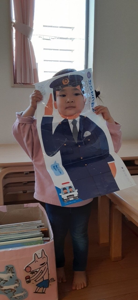 2021年04月05日(月) お知らせ 4/5(月)☆慣らし保育だよ☆ 無事に入園式を終えて、慣らし保育が始まりました。 新園児さんは 泣いてしまうけれど 少しずつ笑顔が出てくるように(╹◡╹) いつも通り、お散歩に行ったりテラスで しゃぼん玉をしたり。 お給食は道徳保育園から手作りの温かいごはんが。 美味しいから おかわりをしてました(^-^) あれ?警察官に変身しちゃったのね♪ だれかな~☆