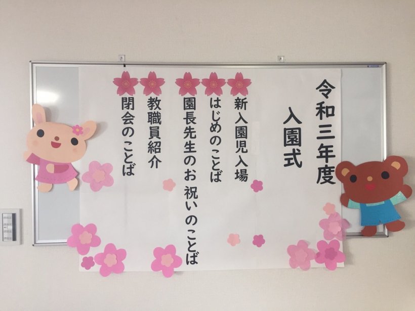 2021年04月05日(月) お知らせ 4/1(木)☆入園式☆おめでとうございます☆ 穏やかな春の日。 新しいお友だち、せんせいを迎え、入園式を迎えることが出来ました。 大切なお子さまと遊びも学びもたくさん楽しみ 健やかに過ごせるよう、これから宜しくお願い致します。 いつもとは違う雰囲気に 緊張している お子さんたちでした(^-^)