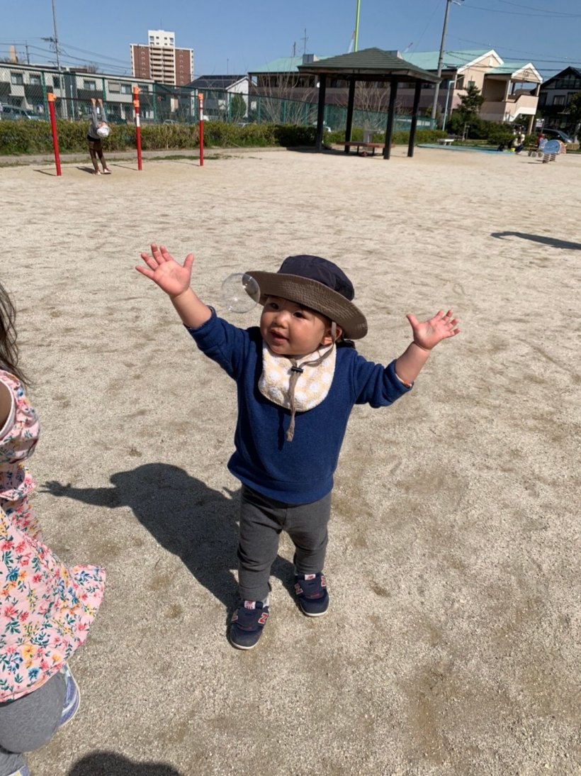 大きいしゃぼん玉や小さいしゃぼん玉が沢山出てくるので大興奮!
