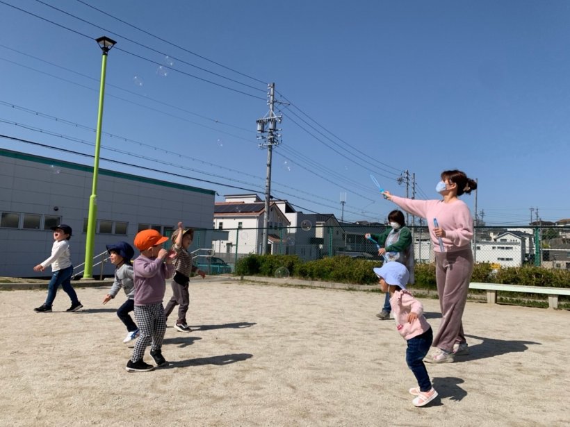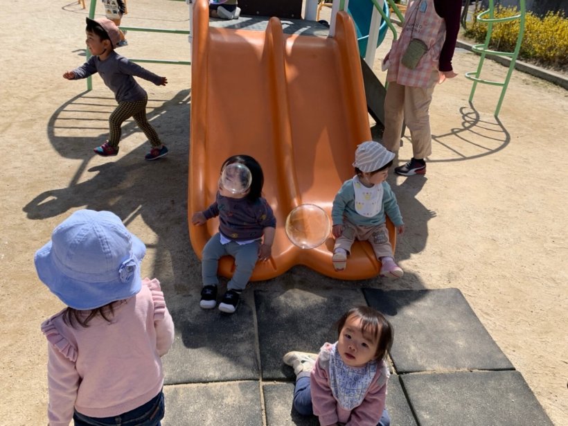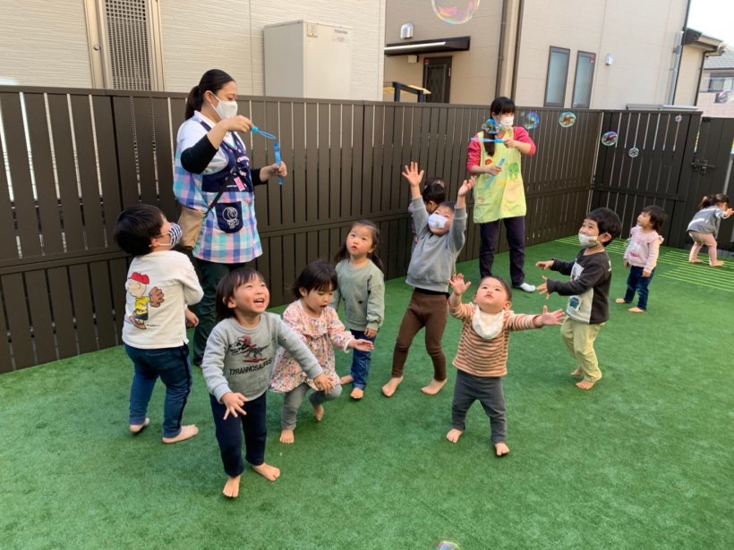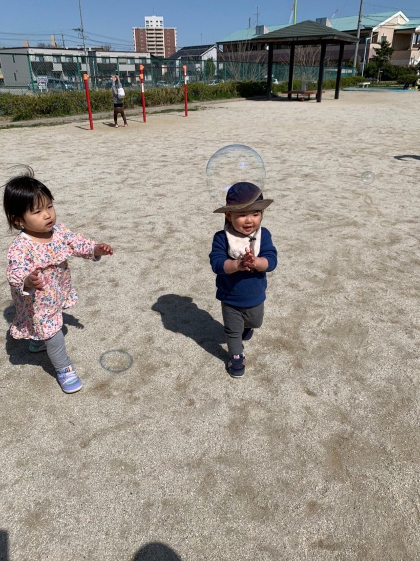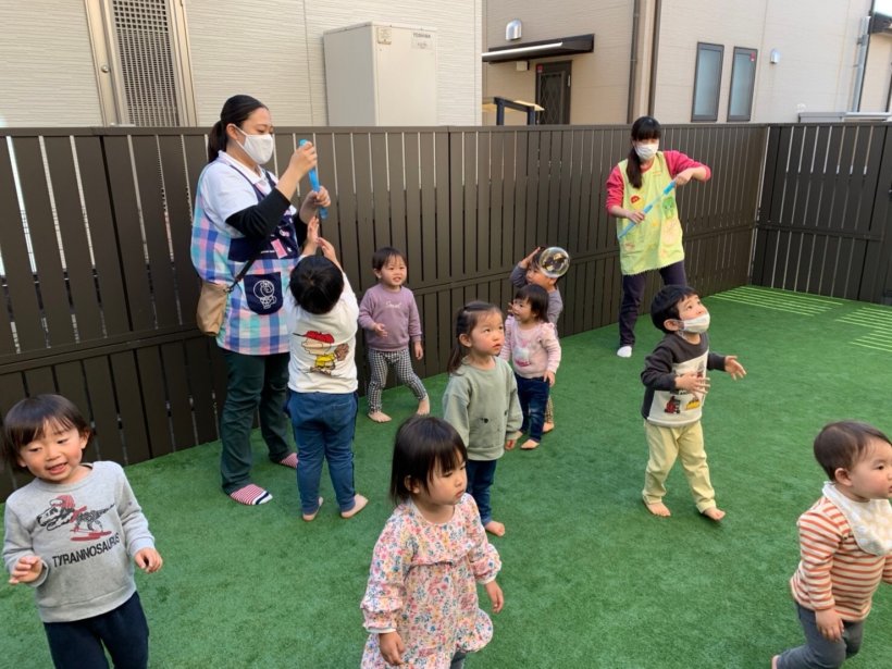 午後からはテラスで しゃぼん玉をしたり、お散歩に行きました。