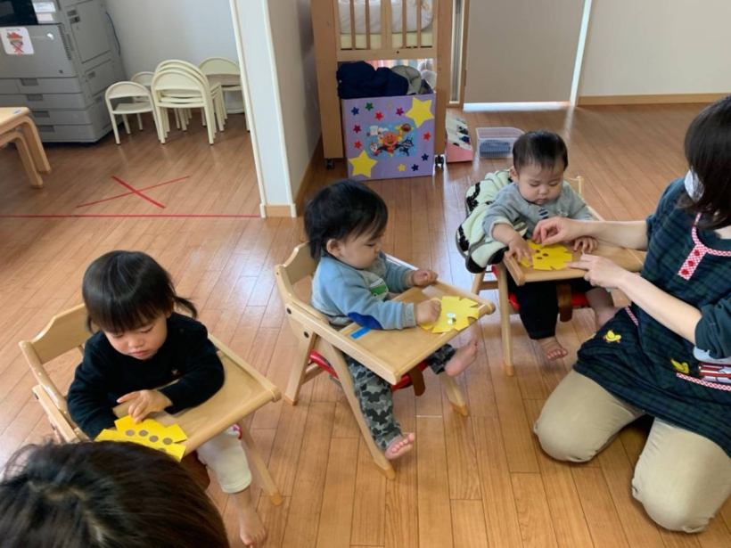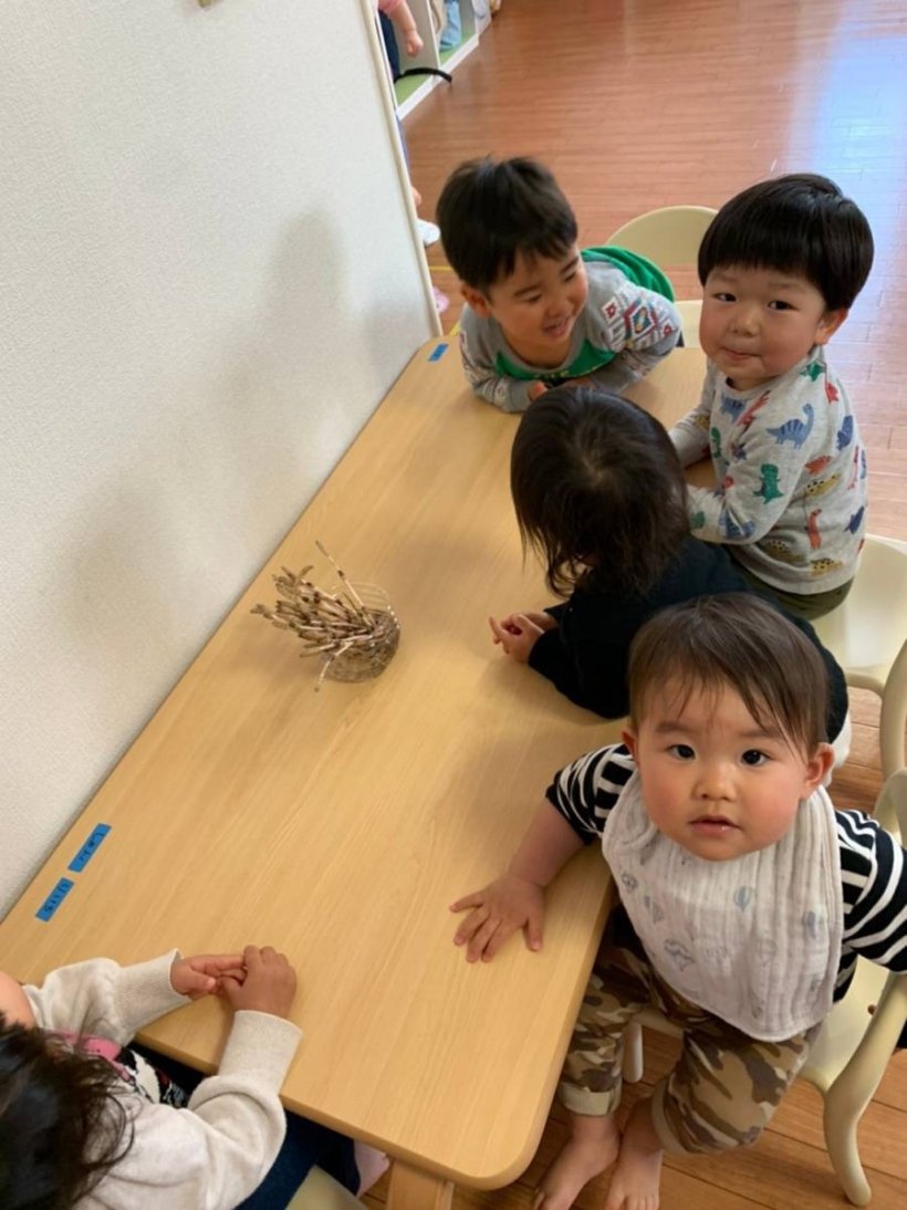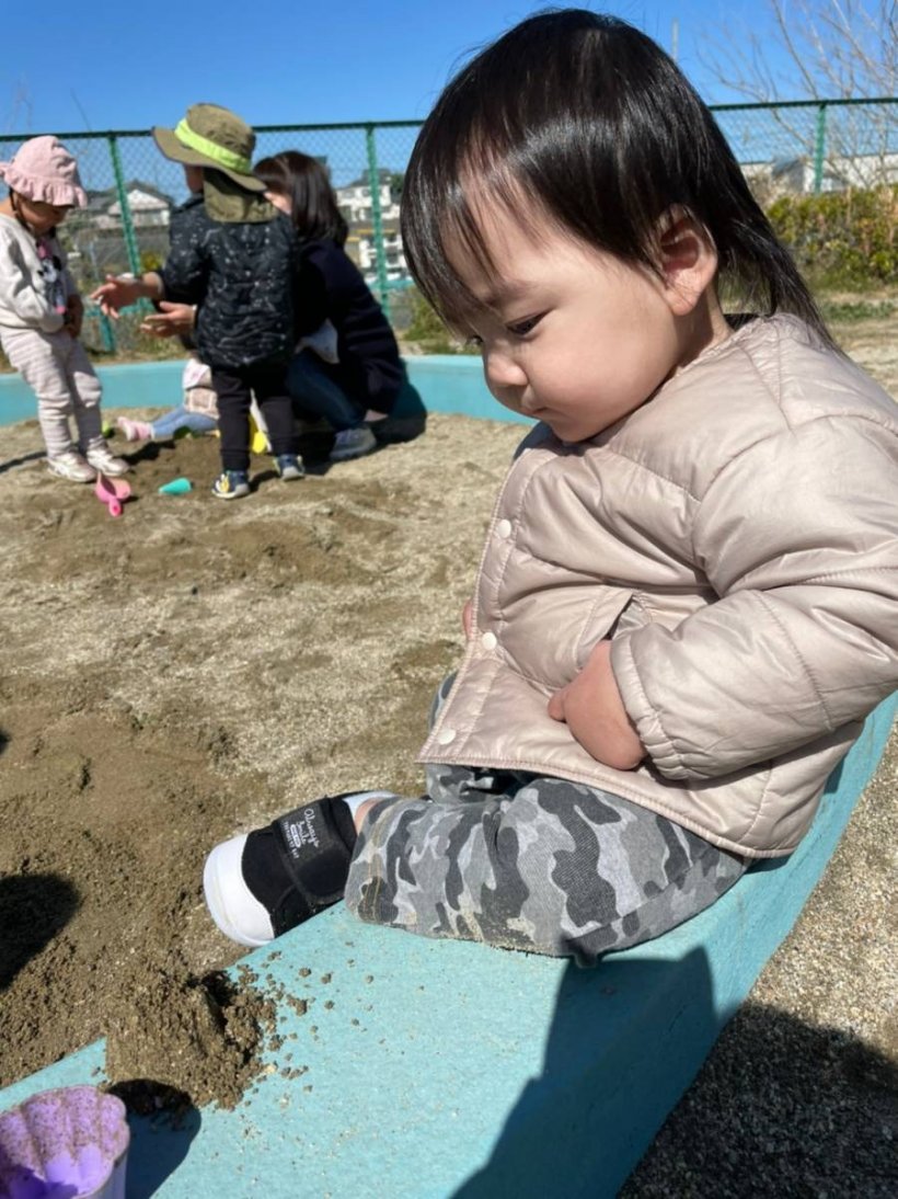 2021年03月09日(火) お知らせ 3/6(土)☆いい天気だなぁ☆ つかまり立ちや歩く練習にはちょうどいい柵を登りきると、小さい子たちには、おっかなびっくりの滑り台! 少~し登り坂だけど少しずつスムーズに登れるようになってきたんだよ。 お昼寝の後のおやつ。 もぐもぐ、食べちゃった。ごちそうさまでした♪