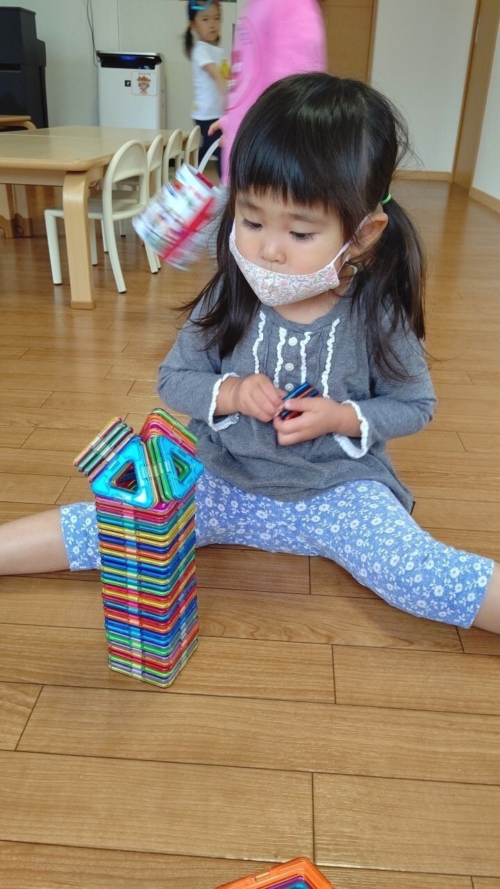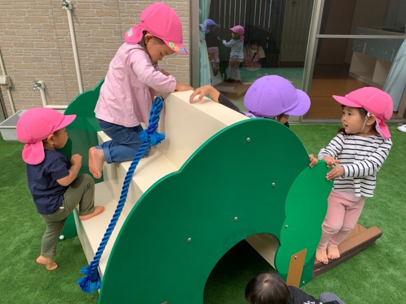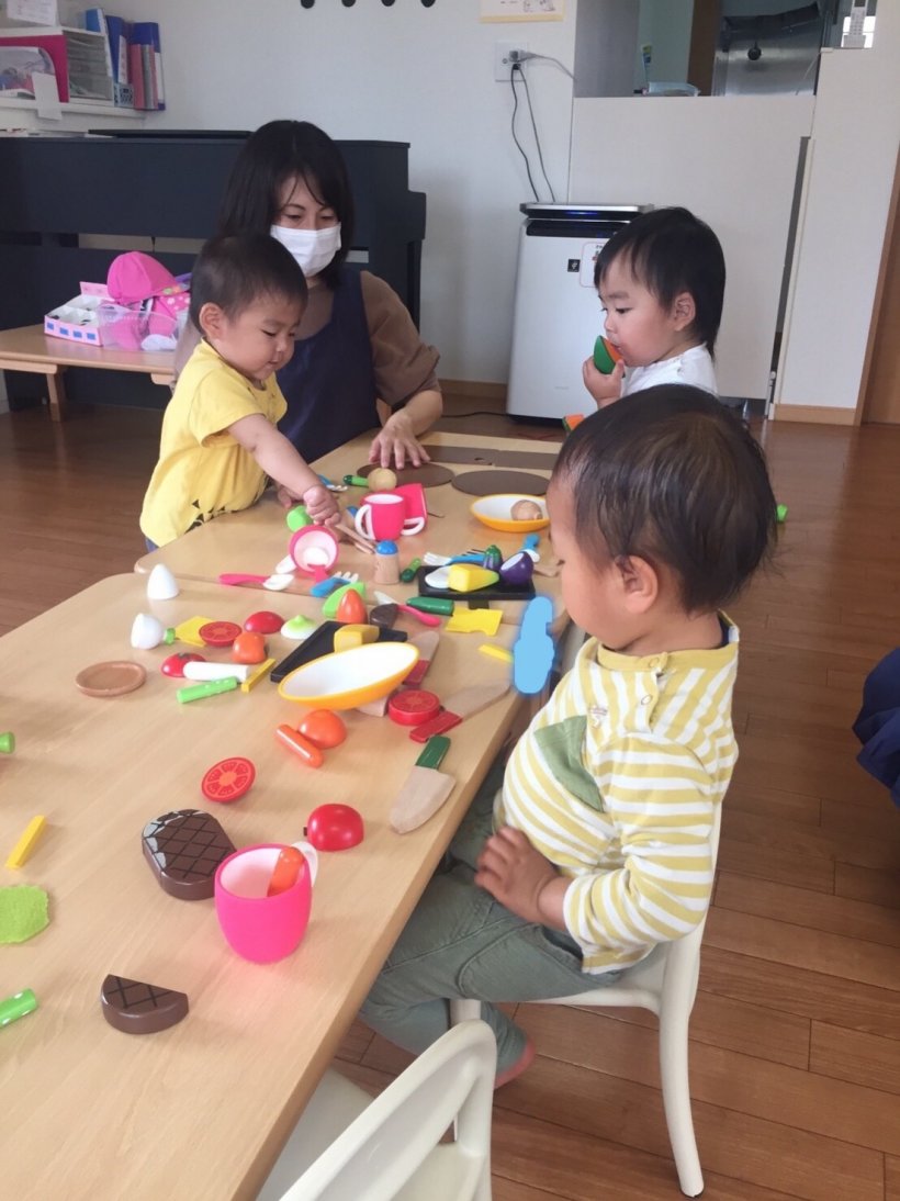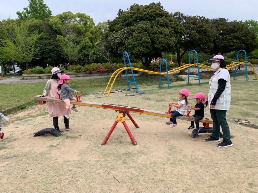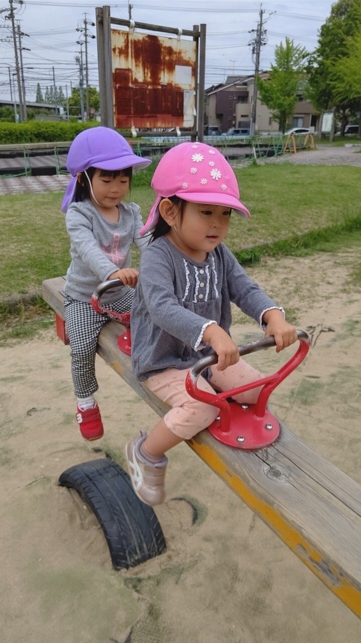 2021年05月14日(金) お知らせ 5/14(金)☆新しいおともだち☆ 新しく入ったおともだち。 ヨロシクね! きょうは夏みたいに暑かったけれど、水分補給をしながらたくさん遊んだよ♪ 恐竜公園で遊んだ日の様子。 はじめは、ちょっぴり怖かったシーソー♪ 料理だんし ガールズチーム♡