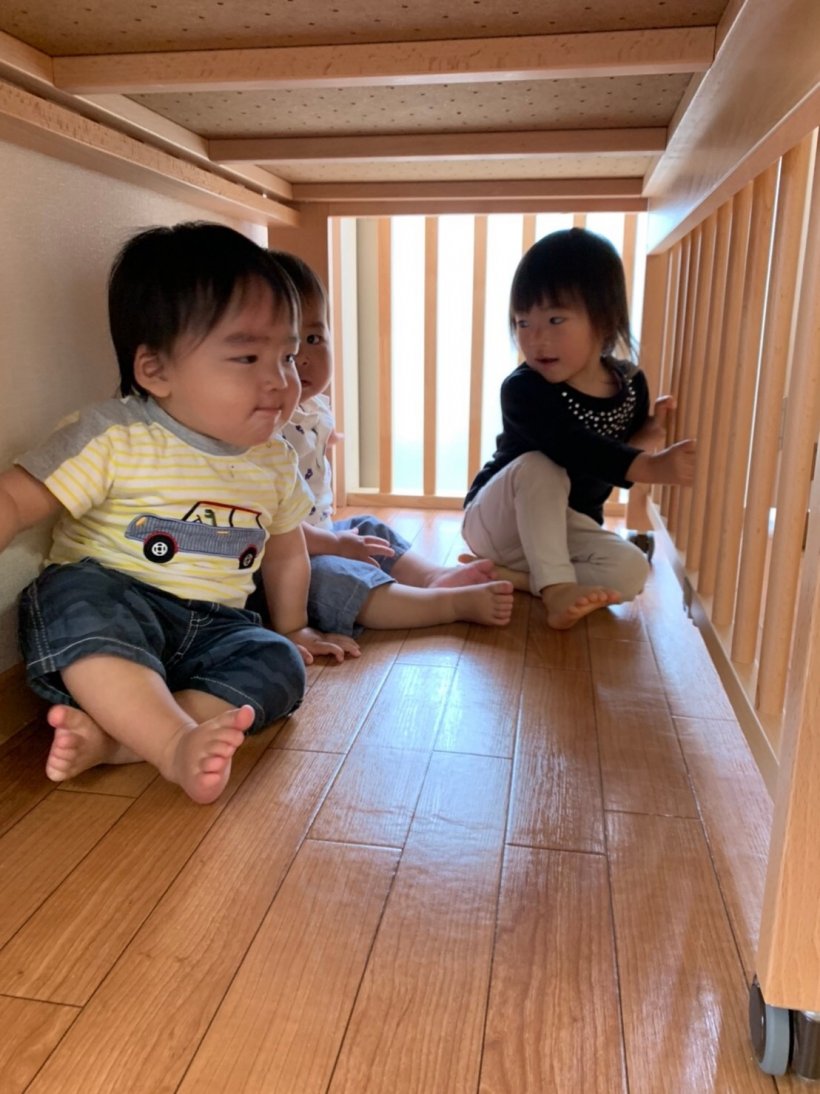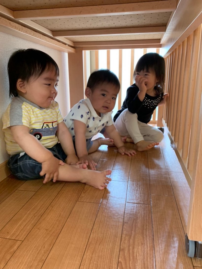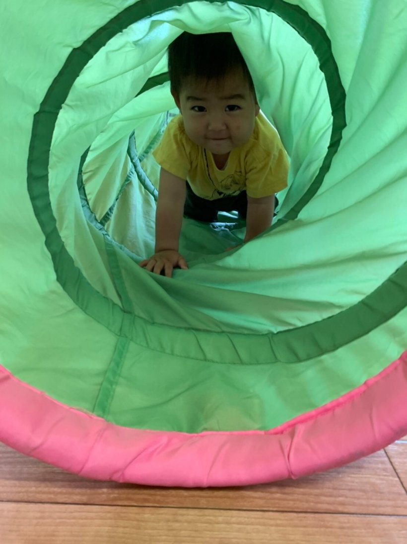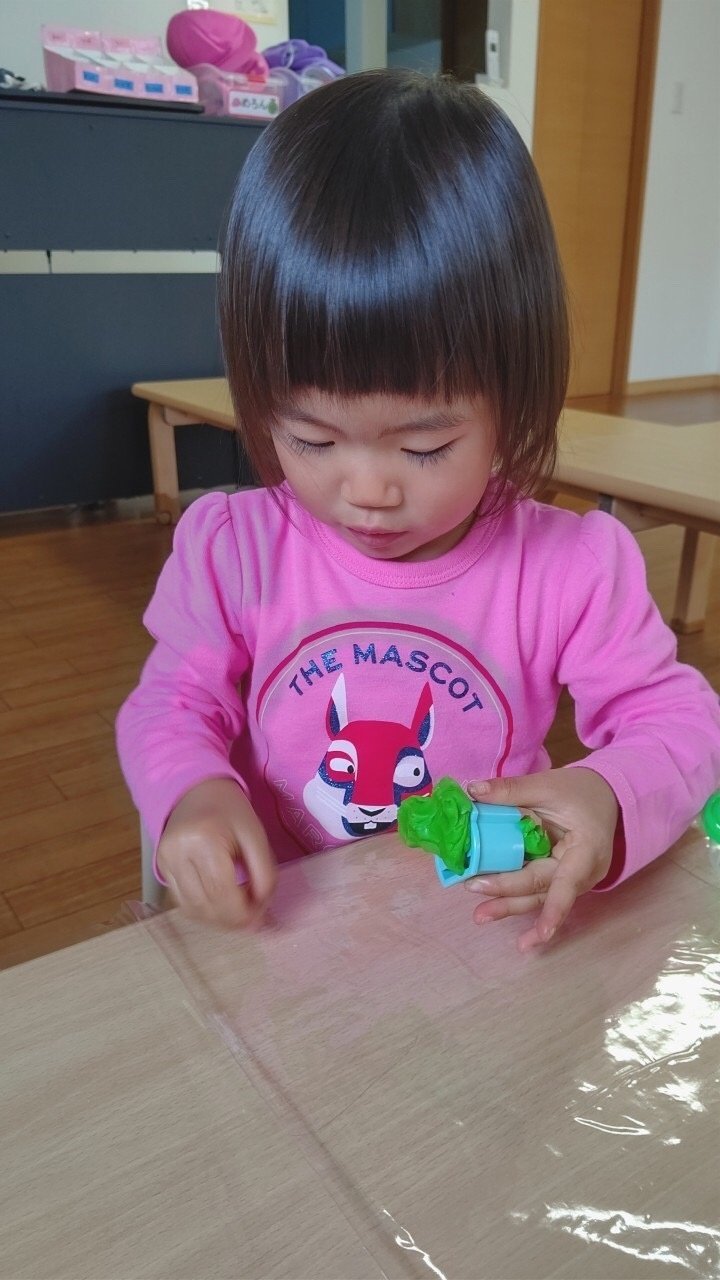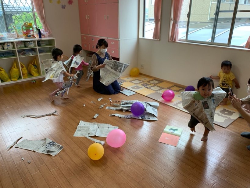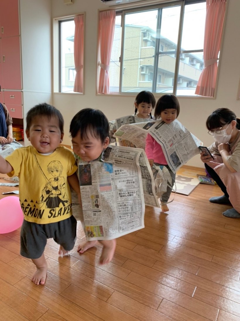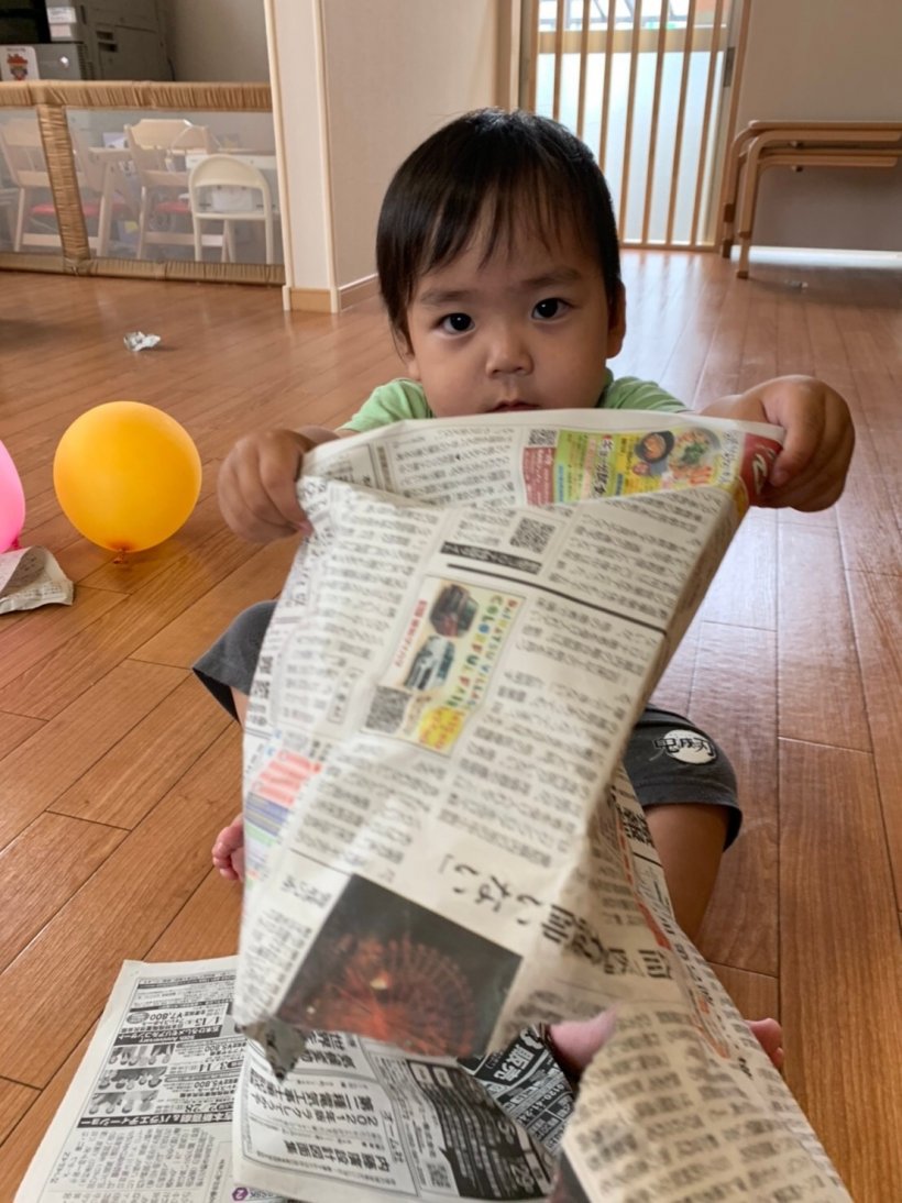 2021年05月19日(水) お知らせ 5/19☆雨の日のあそび☆ 雨が降って、お外に行けない日はお部屋あそびだけど、楽しいよ♪ ちぎったり、こねたり・・・ トンネル ばあぁぁぁ しんぶんしをびりびりしたよ できた〜☆