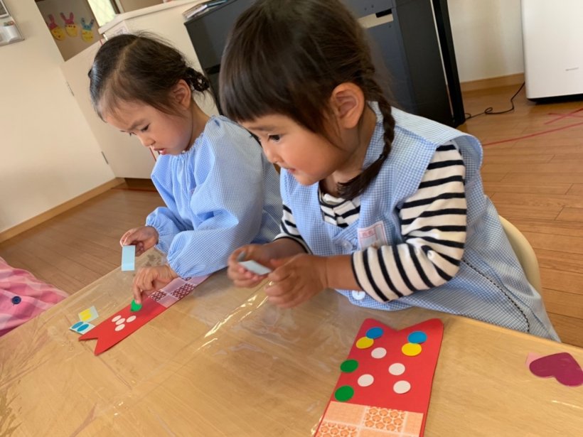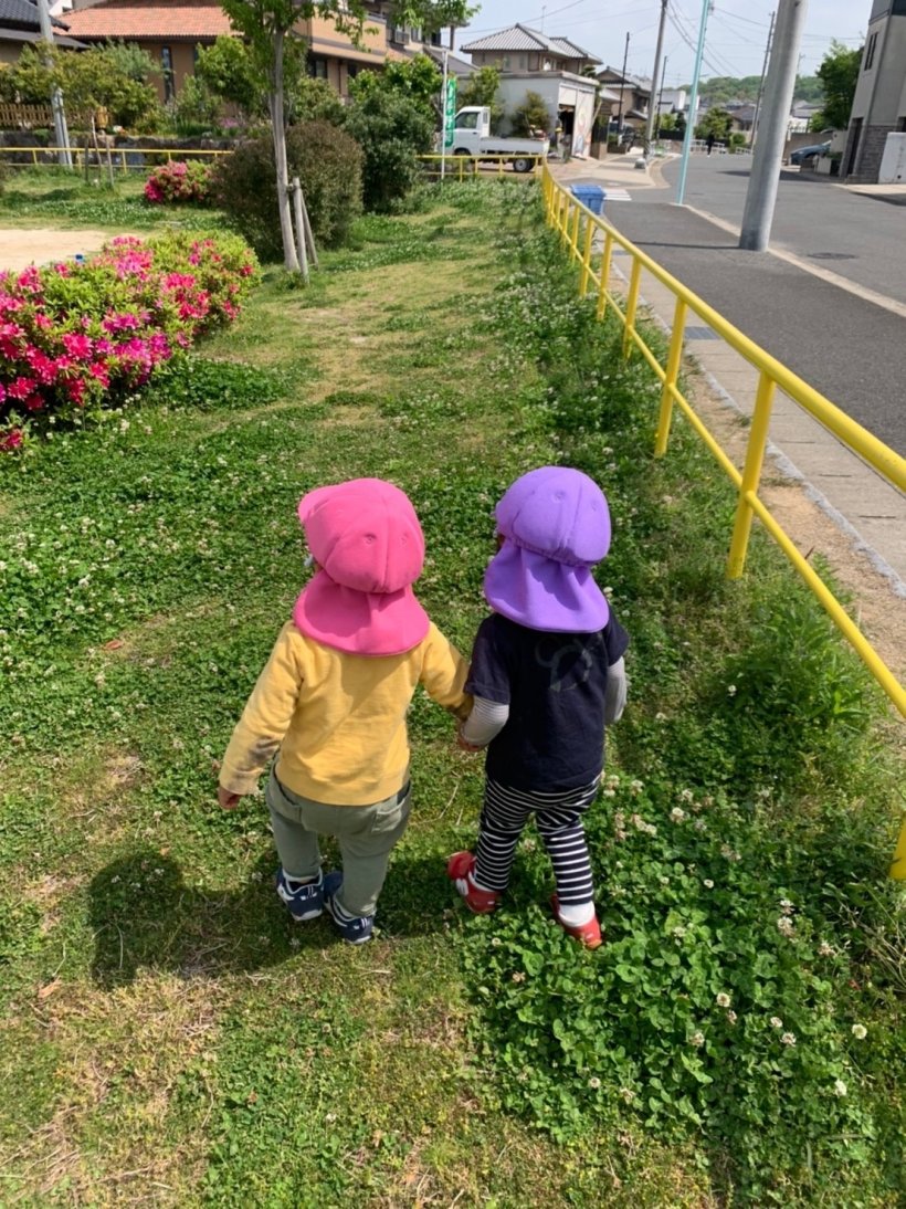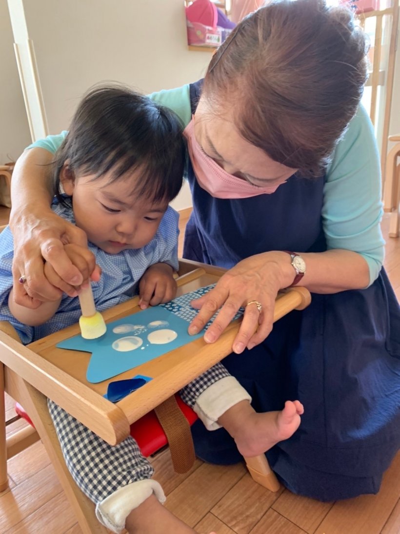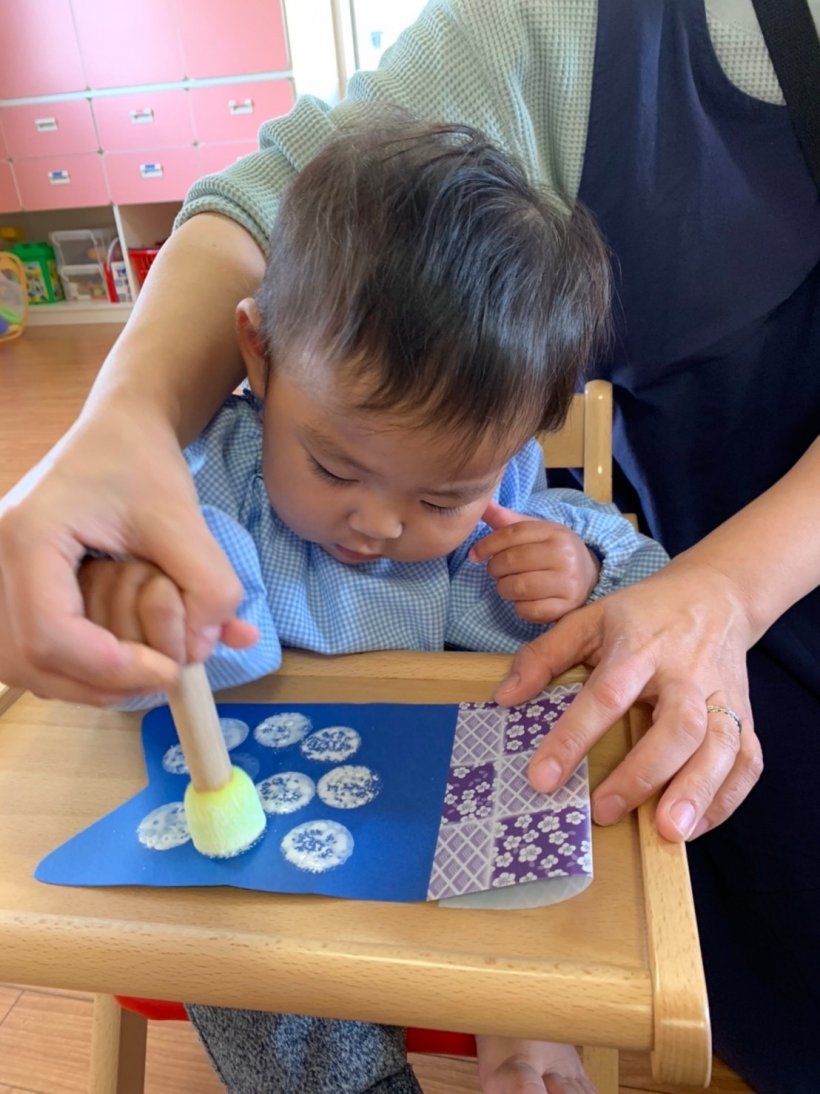 2021年04月23日(金) お知らせ 4/23☆こいのぼりにぺたぺたぺったん☆ 朝のおやつを食べたら公園にゴー! お花いっぱいだね♪ おててつないでおさんぽ♪ お花のケーキを作りました♪ お昼寝の後はぺったんぺったんこいのぼり作り♪ 持って帰るのが楽しみだなー♪ テラスに出て遊んだよ♪