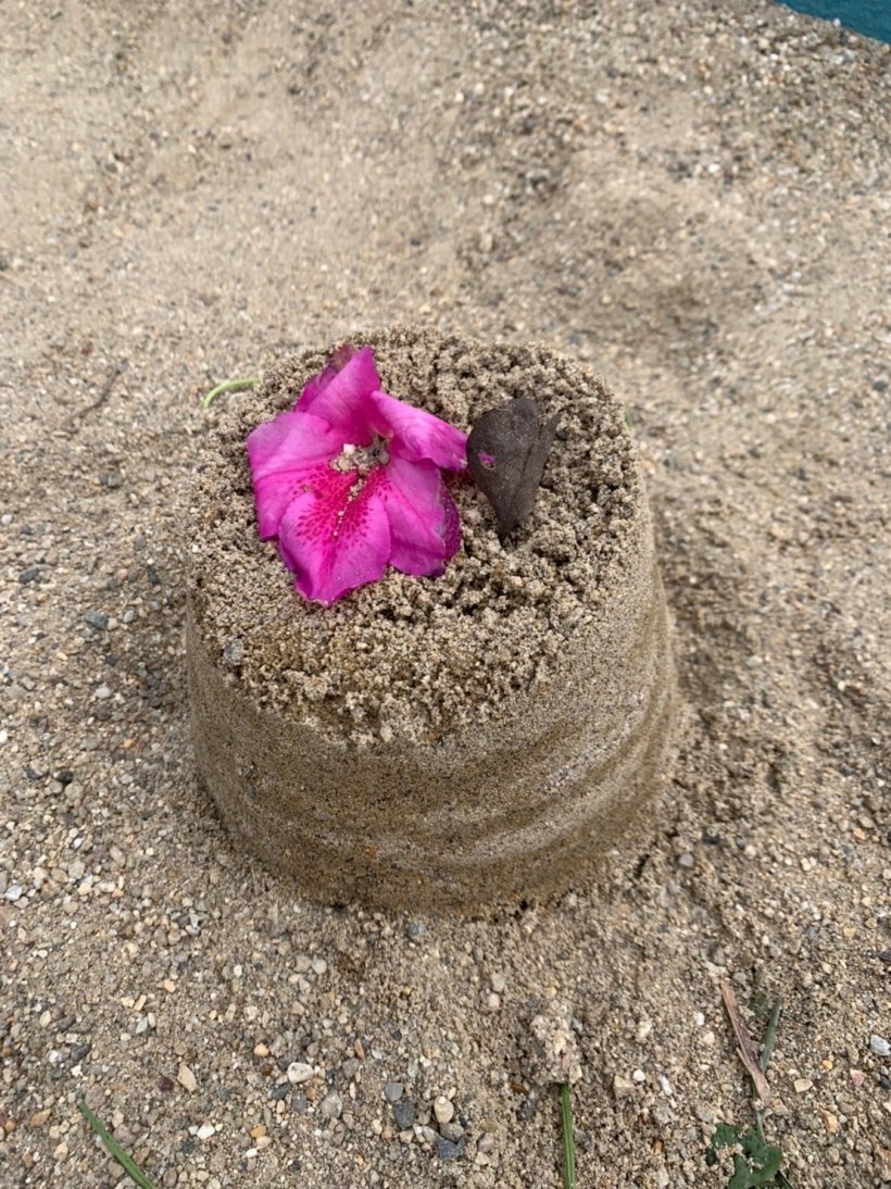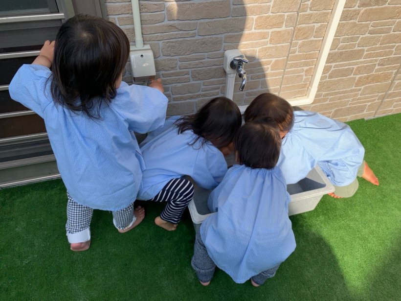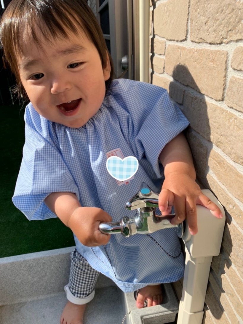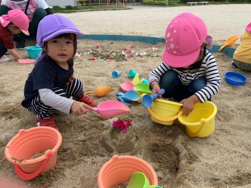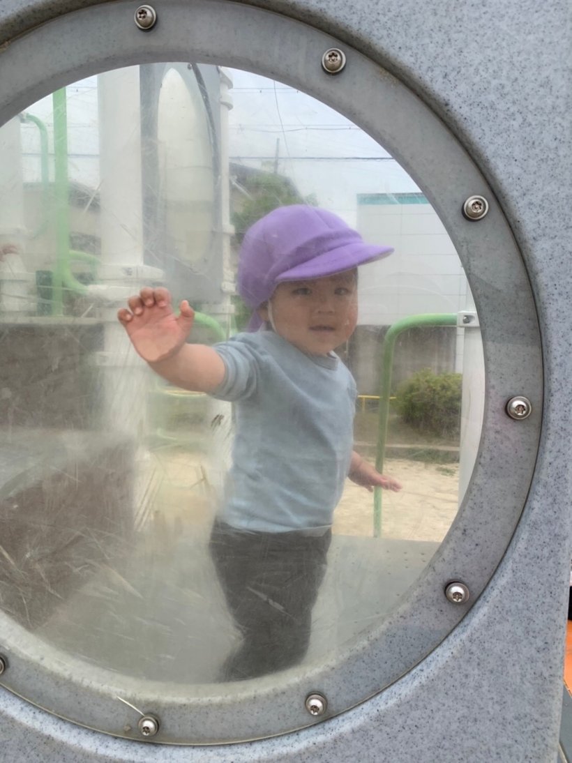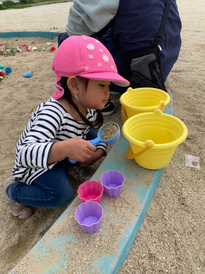 2021年05月06日(木) お知らせ 5/6(木)☆連休明けの子どもたち☆ 気になる! 楽しいすなば(^-^) あれっ! どこで見てるの? おやつのあとはテラスであそんだよ これ(わに)が欲しかったんだ。
