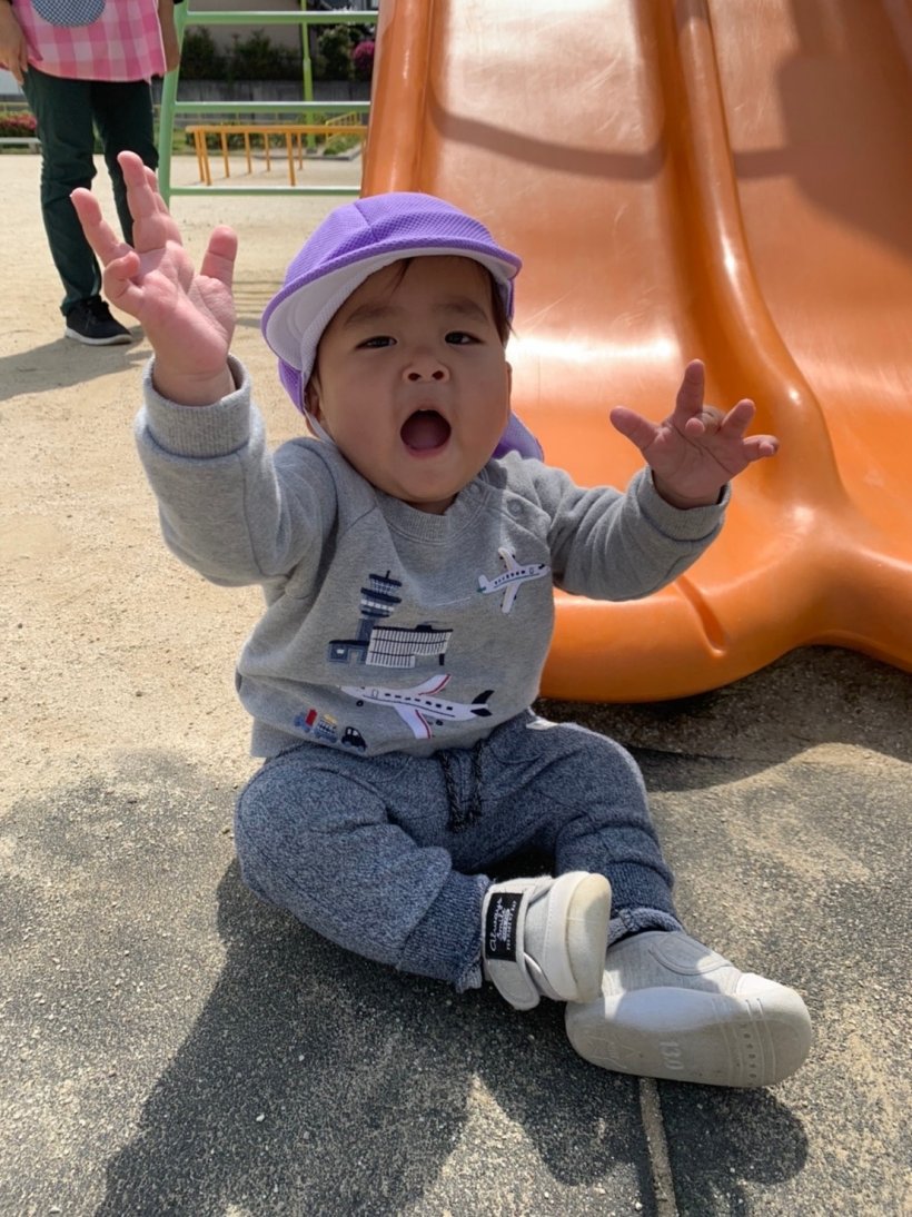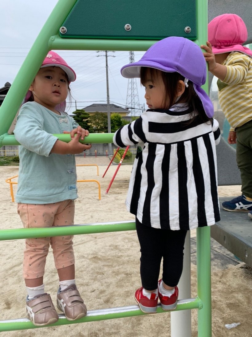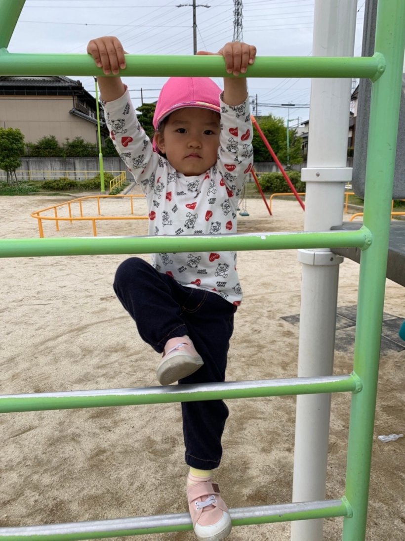 2021年04月30日(金) お知らせ 4/30(金)☆だいすき大高緑地☆ きょうは大高緑地だよーと言うとみんな大喜び!! はりきっておしたくしてくれました♪ 仲良くぶらーん! お空がまぶしい〜 せんせいのおひざでしゅーーー♪ いっぱいあそんだね♪