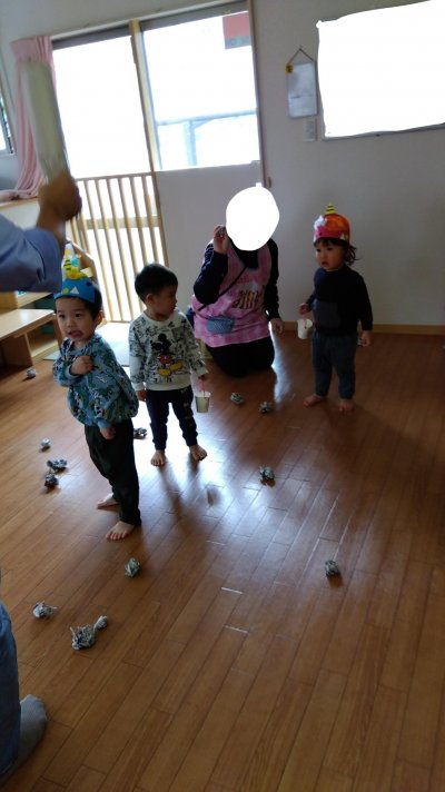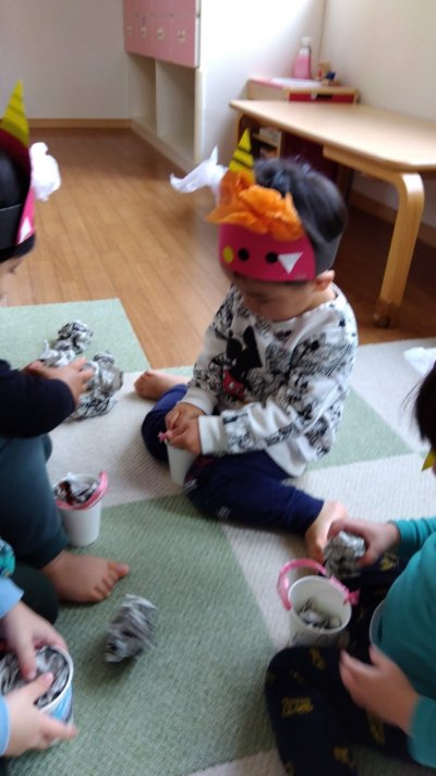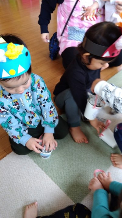 鬼はちょっぴり怖いけれど、お友だちと先生が一緒なら「えい!」「おにはーそと!!」力強い声が聞こえます♪