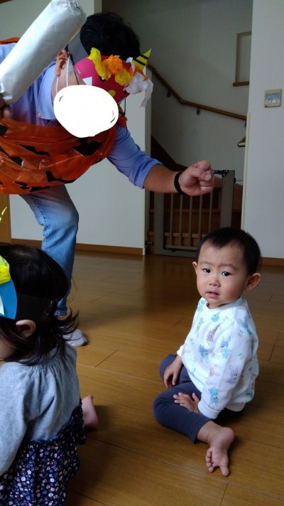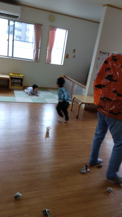 いつも遊んでくれる先生が鬼になってる・・・とびっくり!!
