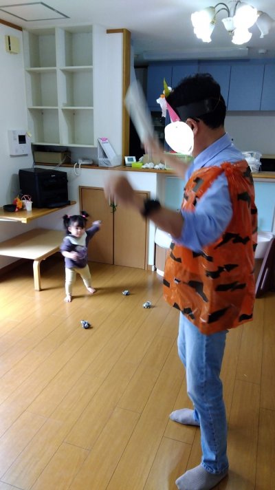 「あいやぁぁ!!」勢いが良すぎて、鬼のお面が飛んでいくほど楽しんでいました(*´▽`*)