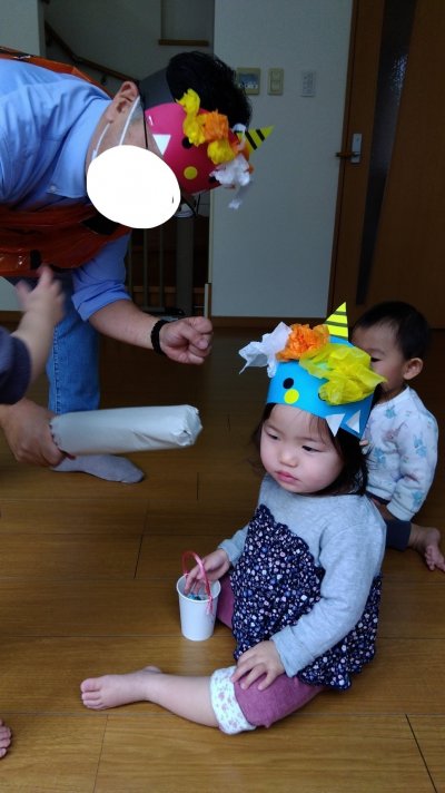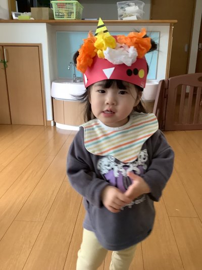 製作で鬼のお面と豆入れも作り、楽しみに待っていました♫